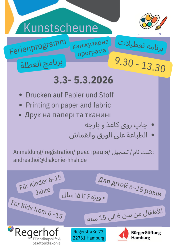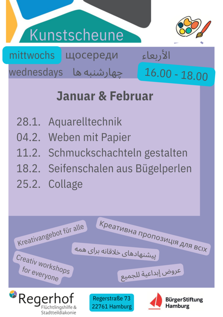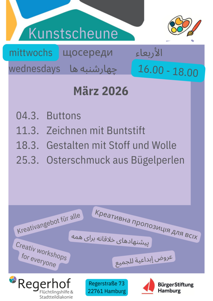 Der Regerhof, ein Ort der Begegnung in Hamburg-Bahrenfeld (Regerstraße 73) ist Dienstag und Mittwoch von 10 bis 18 Uhr offen für alle Interessierten. Die Kleiderkammer und das Café Elio freuen sich über ihren Besuch!